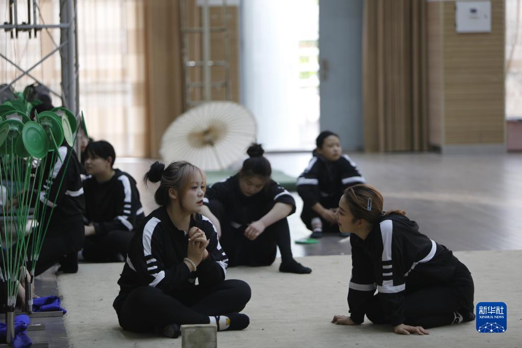 3月31日,演員在位于江蘇省鹽城市建湖縣的江蘇省雜技團訓練間歇休息。