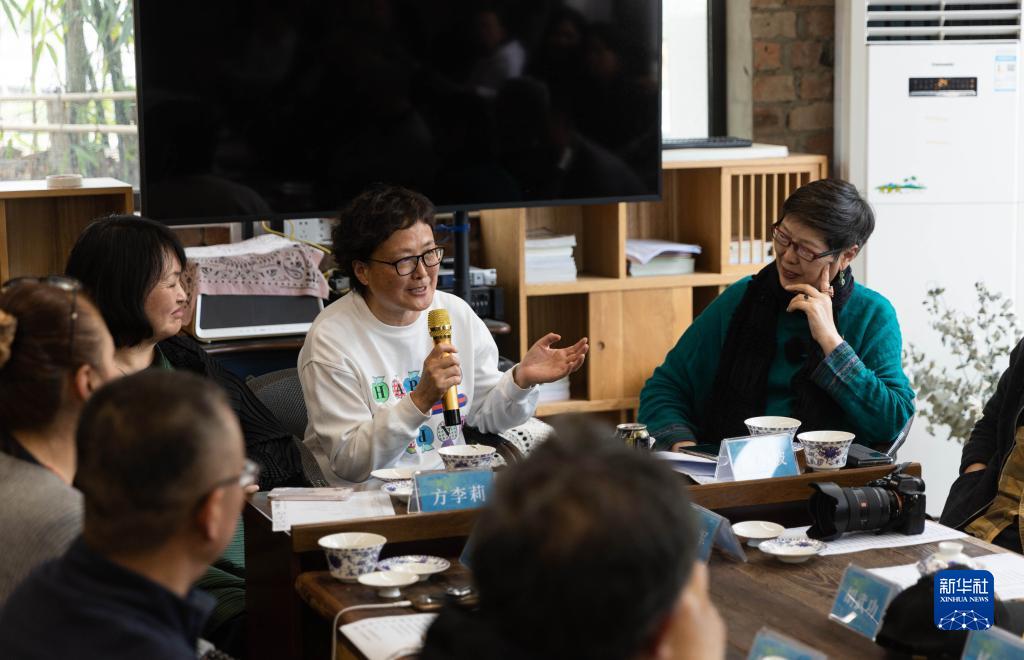 4月1日,成都籍?dāng)z影師毛曉初(右二)在分享創(chuàng)作歷程。