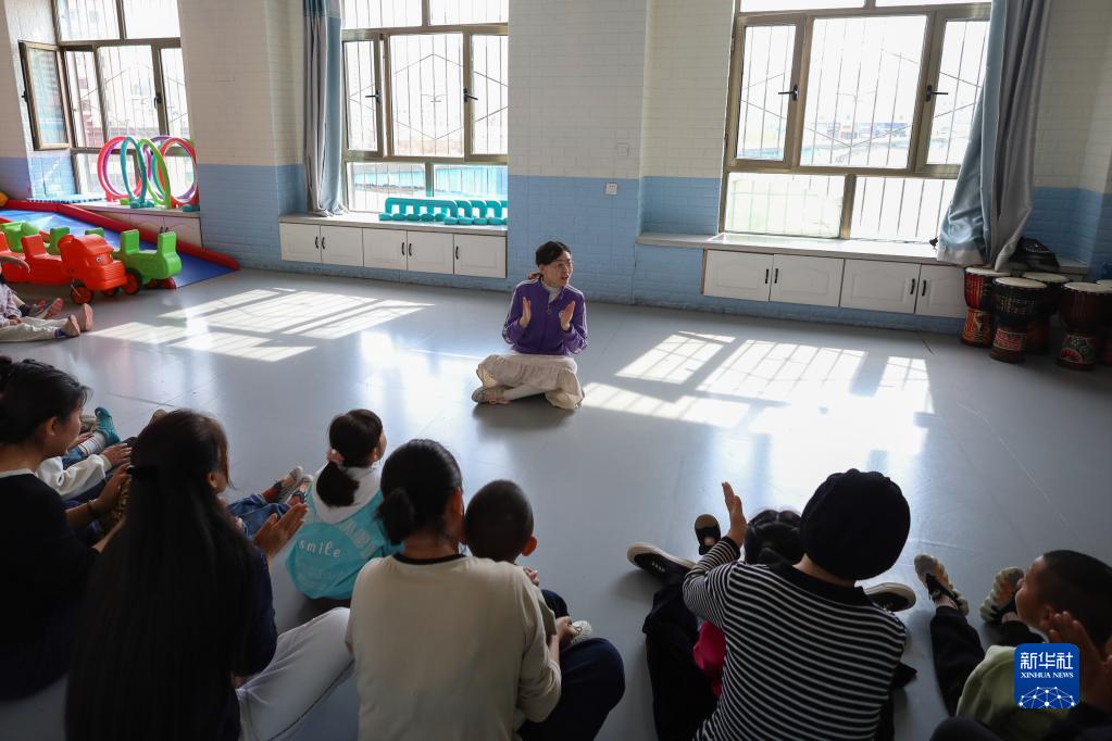 3月30日,特教老師陳進為孤獨癥兒童和家長們上集體課。