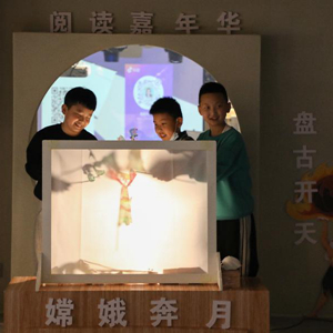 4月1日,在甘肅省蘭州市的讀者出版集團(tuán)數(shù)字閱讀中心讀者小站,小朋友體驗(yàn)中國(guó)神話故事主題皮影戲。