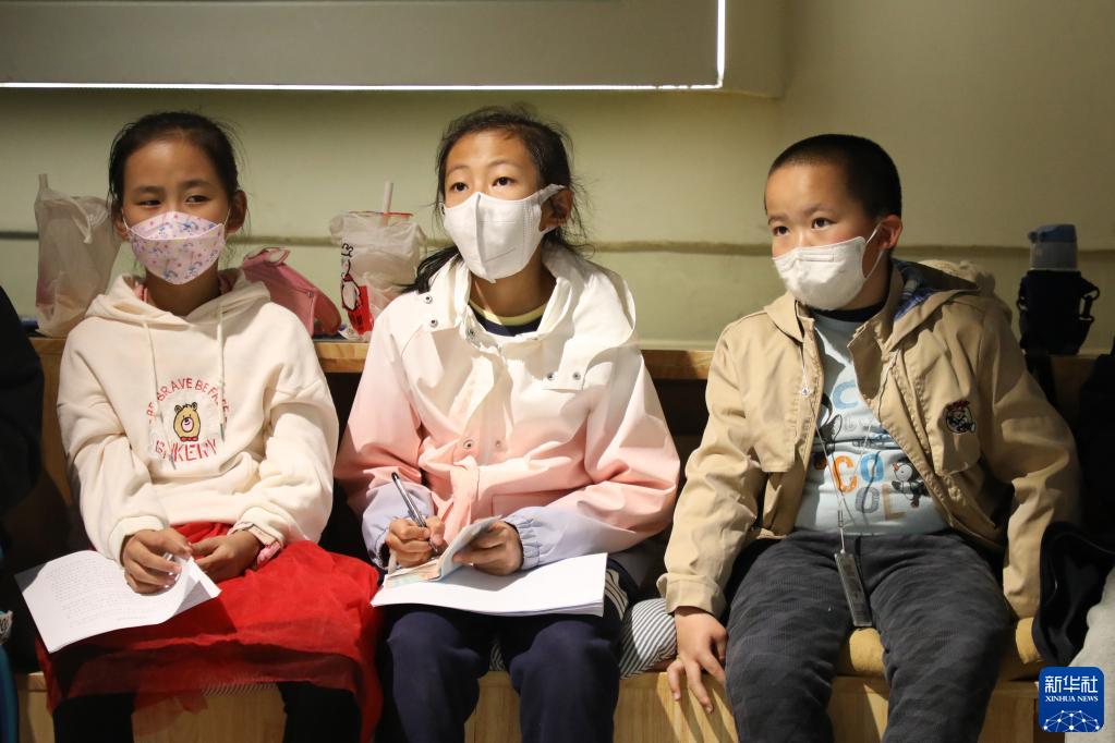 4月1日,在甘肅省蘭州市的讀者出版集團數字閱讀中心讀者小站,小朋友聆聽老師的閱讀分享。