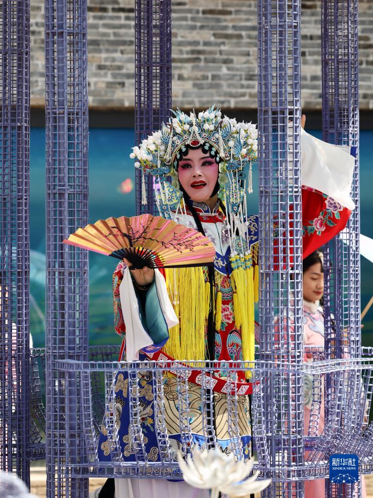 4月1日,演員在位于江蘇省鹽城市建湖縣的淮劇小鎮(zhèn)表演淮劇。