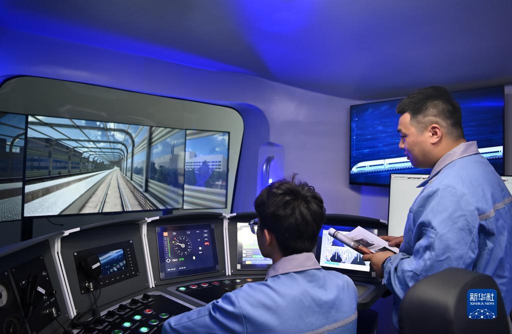 4月3日,員工在天津武清交控技術裝備有限公司的模擬駕駛艙內工作。