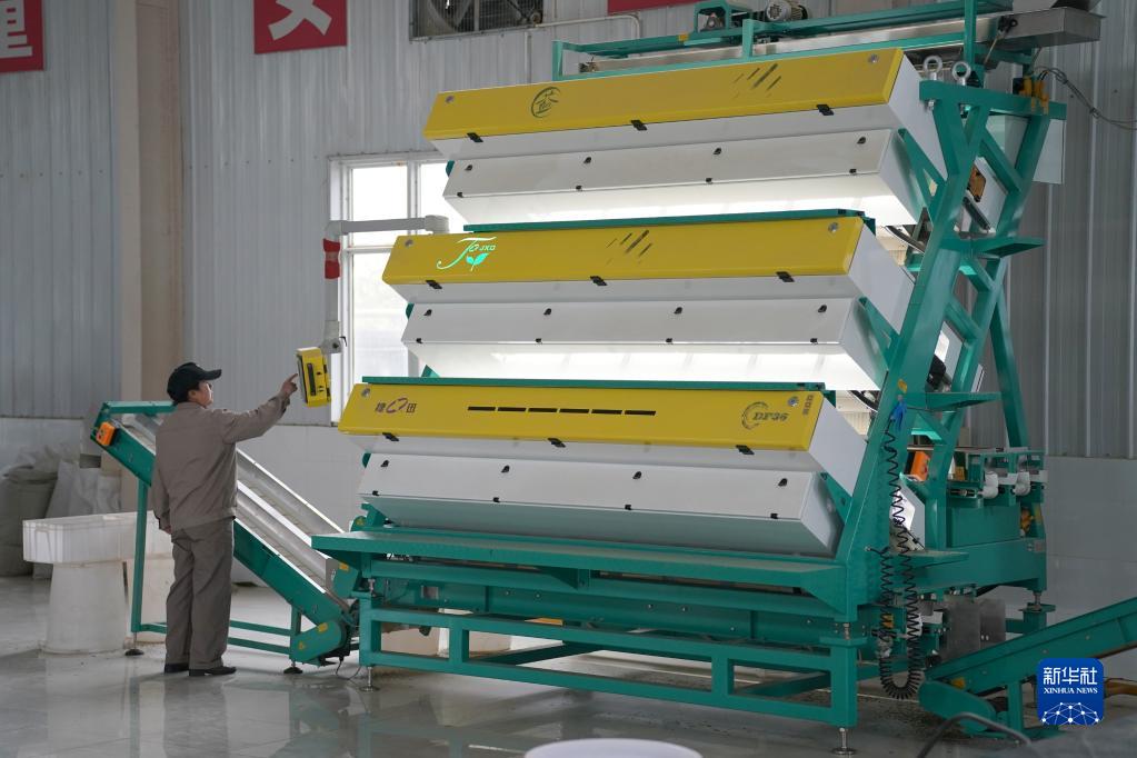 4月3日,在西鄉(xiāng)縣一家茶企生產(chǎn)車間,工人在操作色選機分揀茶葉。