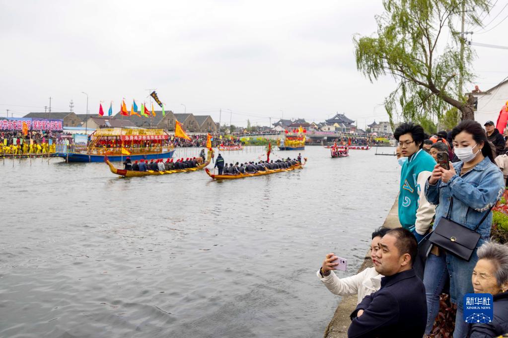 4月5日,人們觀看茅山會(huì)船盛會(huì)。