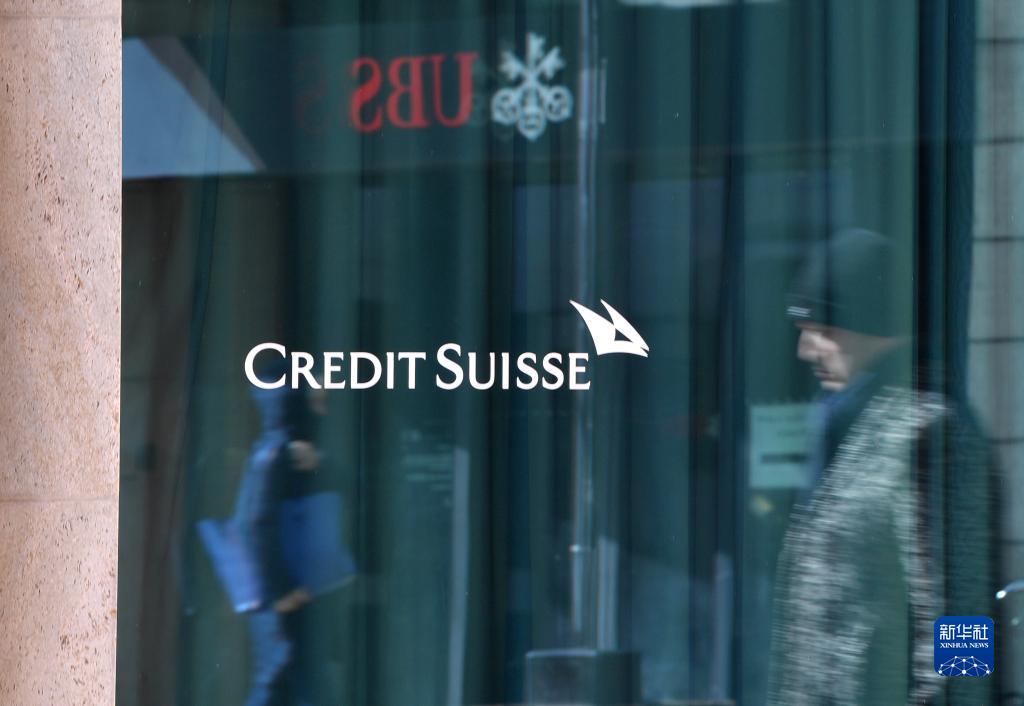 4月4日,在瑞士日內瓦,人們走過瑞士信貸銀行大樓。