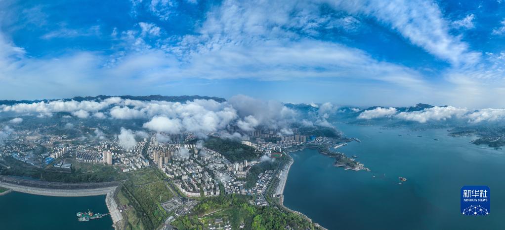 一場春雨過后,長江三峽上空云霧繚繞,如水墨畫卷,美不勝收。