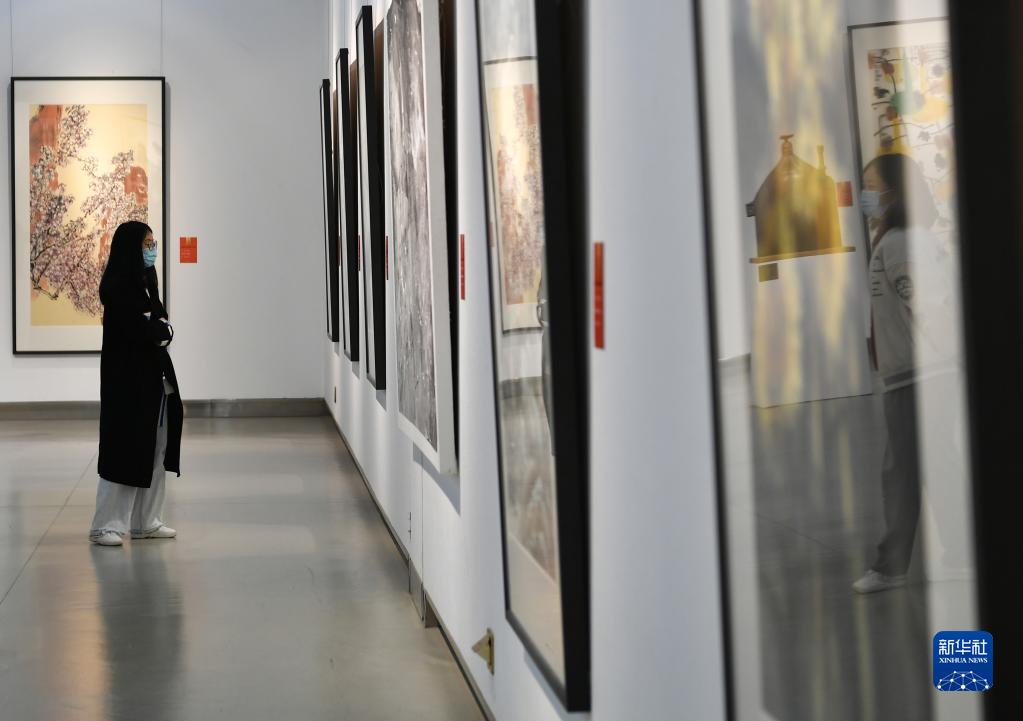 4月6日,觀眾在長安畫派藝術中心觀賞美術作品。