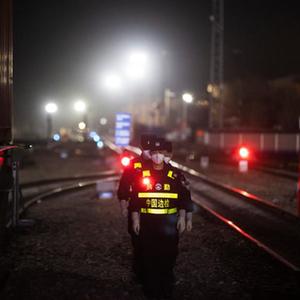 在阿拉山口,記者見到崔洪武的時(shí)候已是深夜。他穿戴整齊,站在阿拉山口出入境邊防檢查站寬軌執(zhí)勤點(diǎn)的值班室里等候列車到達(dá)的指令。凌晨時(shí)分,幾列來自哈薩克斯坦的貨運(yùn)列車抵達(dá)。崔洪武帶領(lǐng)兩位同事在寒風(fēng)中出發(fā),來到列車的最后一節(jié)車廂開始檢查工作,將列車的每一個(gè)細(xì)節(jié)都精準(zhǔn)過濾了一遍。
