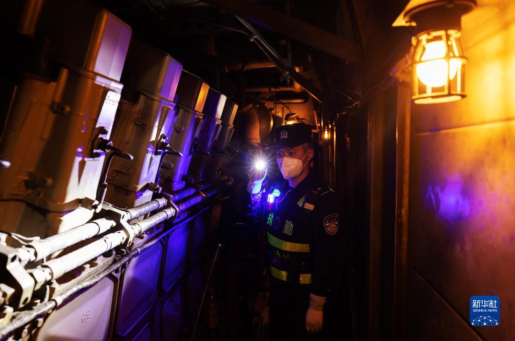 4月4日凌晨,崔洪武在車頭進行查緝工作。新華社記者 費茂華 攝