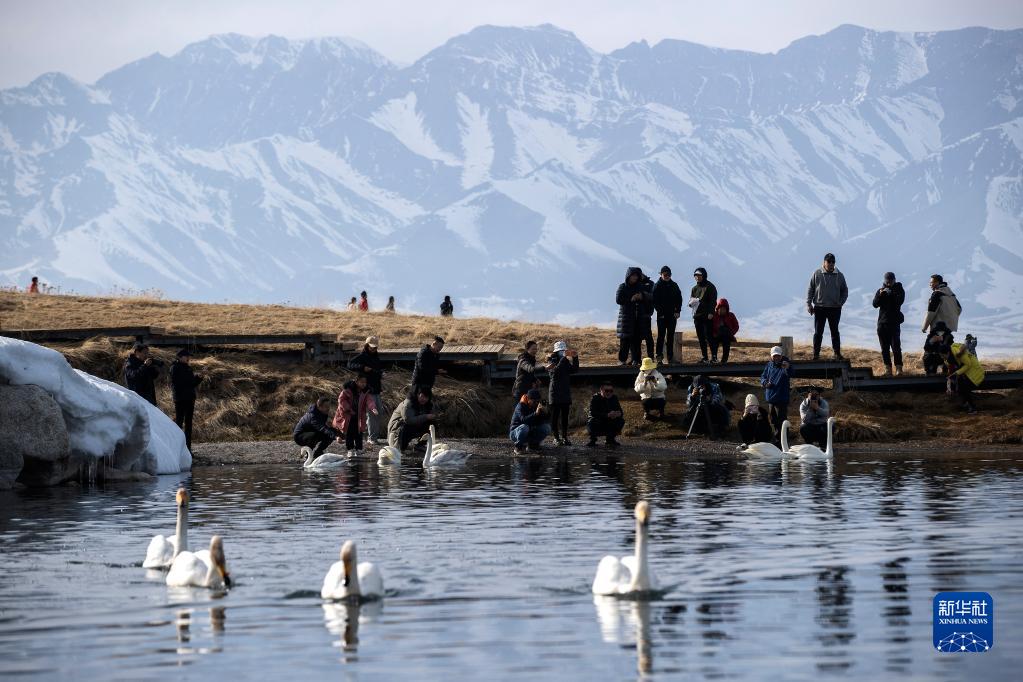 賽里木湖是新疆海拔最高、面積最大的高山湖泊,被譽(yù)為“大西洋最后一滴眼淚”,四季景色宜人、美不勝收。這里動植物種類豐富,人們經(jīng)常可以看到白天鵝、北山羊、狐貍等動物的身影,并與它們近距離互動,呈現(xiàn)出一幅人與自然和諧相處的美好畫面。