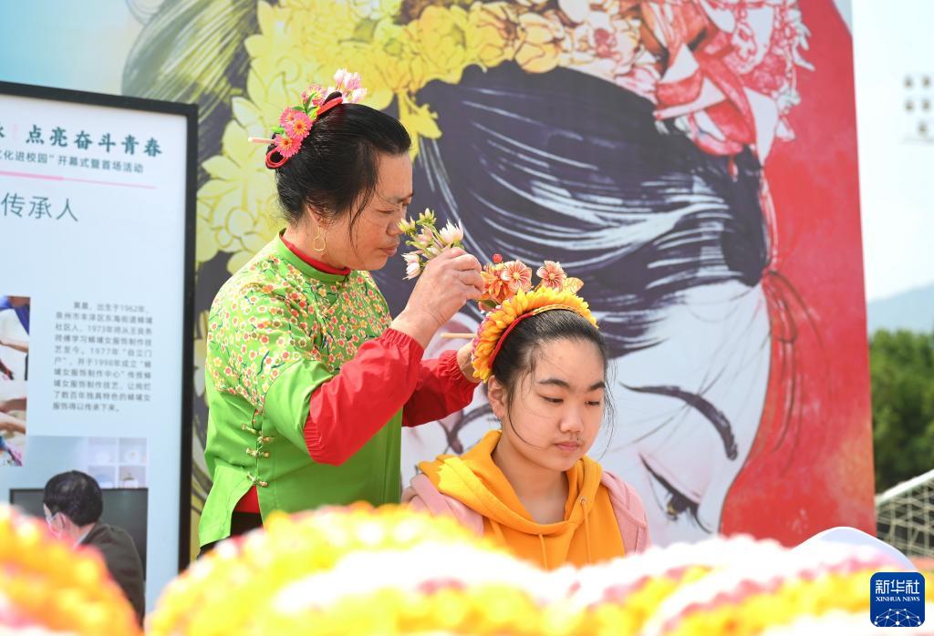 當日,以“傳承文化根脈 點亮奮斗青春”為主題的福州大學城“優秀傳統文化進校園”開幕式在福建醫科大學旗山校區舉行。現場舉行了非遺傳承人與高校社團結對子、非遺藝術展演、傳統文化講座等多項活動。