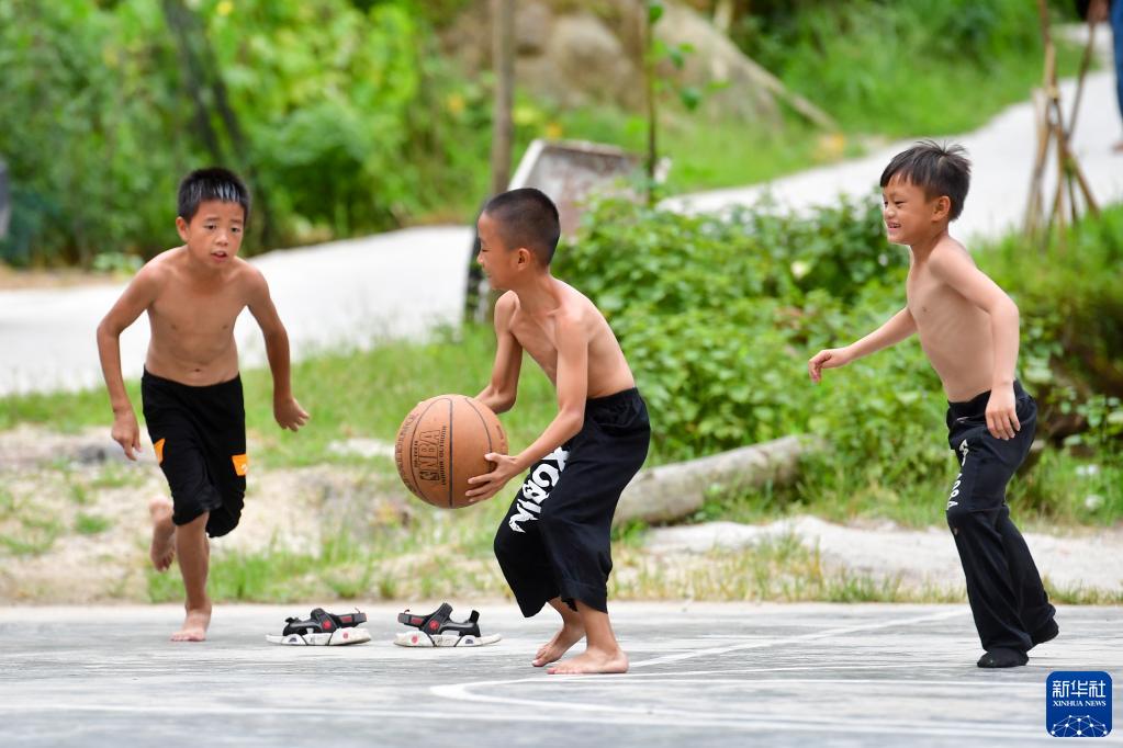 在大苗山深處的桂黔烏英苗寨,籃球運(yùn)動(dòng)深受當(dāng)?shù)厝藗兿矏邸P氯A社記者 黃孝邦 攝
