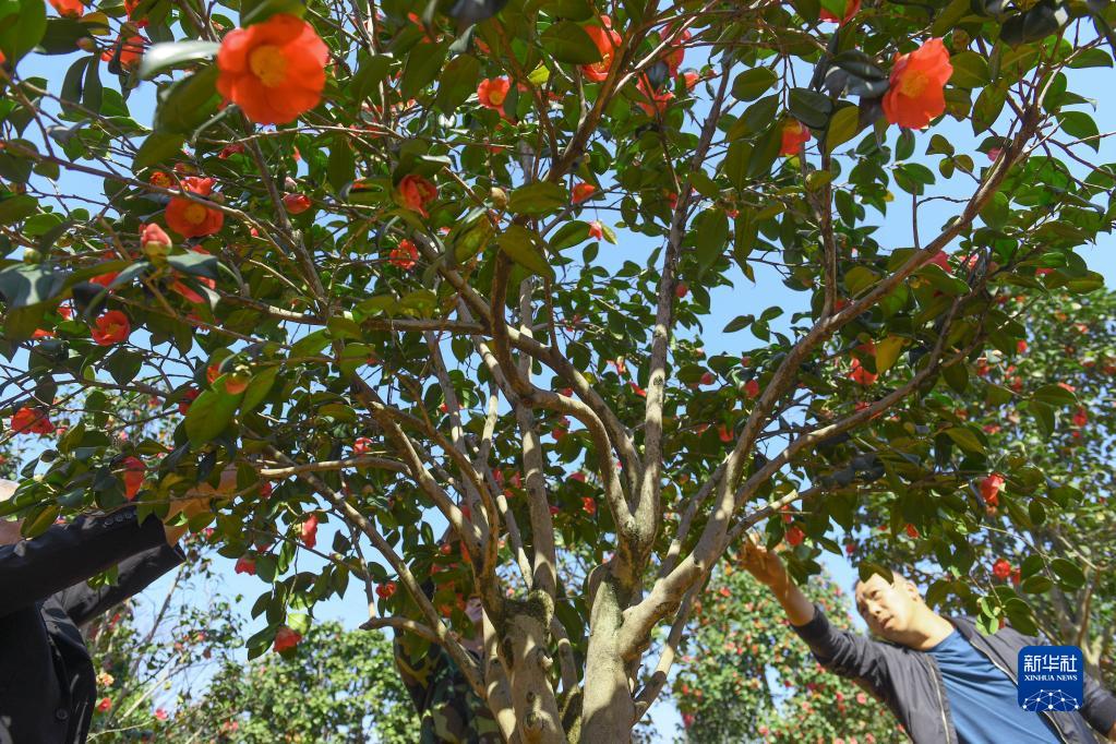 工作人員在浙江省金華市婺城區羅店鎮的四季茶花谷養護茶花(3月10日攝)。這個利用閑置土地開發的產業園集茶花種植、新品種培育、休閑旅游等功能于一體。