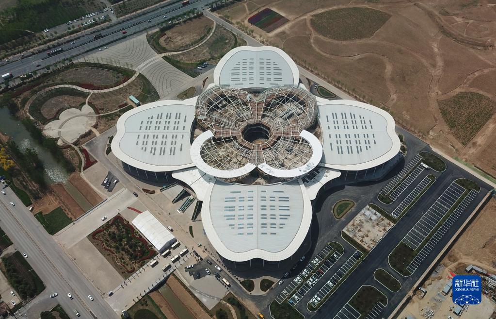 這是4月9日拍攝的投入使用的昆明國際花卉拍賣交易中心菏澤分中心(無人機照片)。