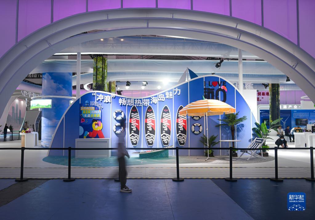 這是第三屆中國國際消費品博覽會一處展臺(4月8日攝)。