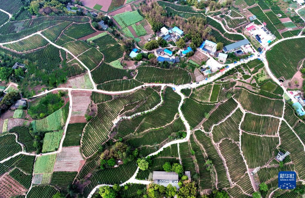 4月9日拍攝的四川省眉山市仁壽縣藕塘鎮食用玫瑰花種植基地(無人機照片)。