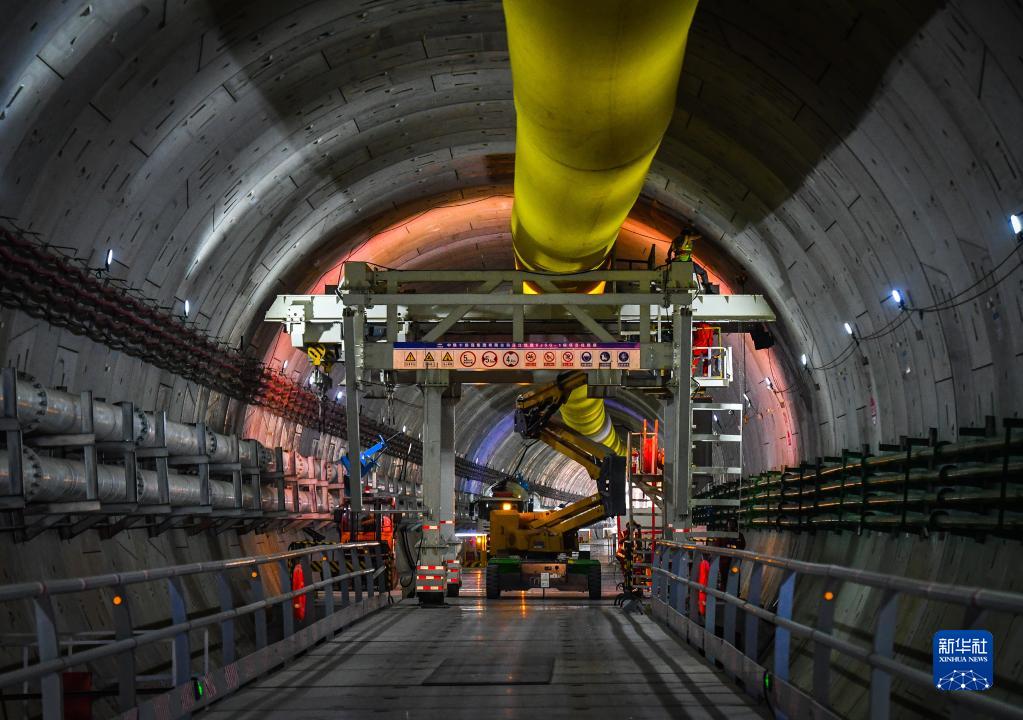 在深江鐵路珠江口隧道東莞虎門段,中鐵十四局施工人員在檢查已拼裝管片(4月7日攝)。