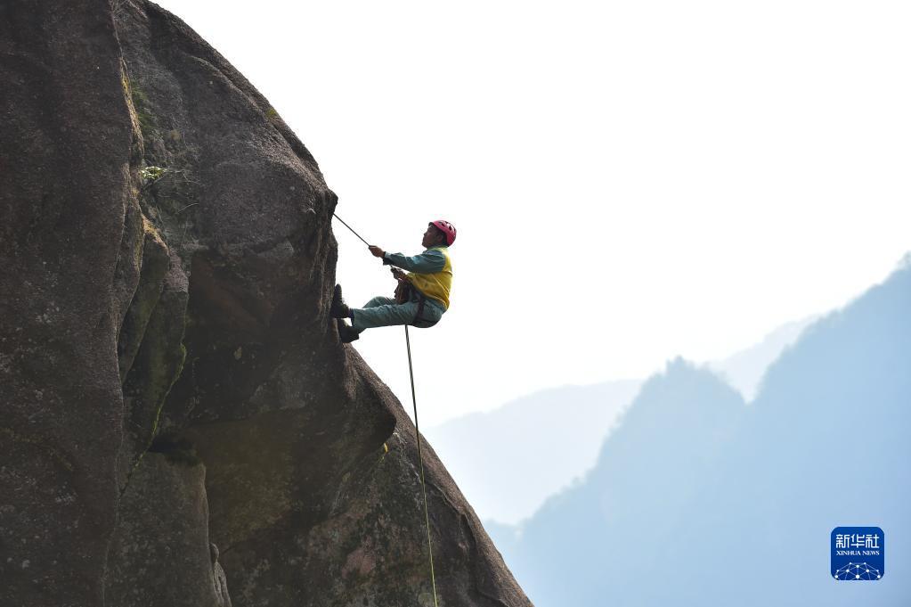 在安徽黃山風景區,有這樣一群特殊的環衛工,他們常年攀爬在懸崖峭壁間清理垃圾。玉屏環衛所的李培生是他們中的一員,20多年來,李培生累計放繩長度達1800公里,除了巡查并清理垃圾,還經常幫助游客撿拾掉下懸崖的物品,2012年被評為“中國好人”。黃山風景區一共有18名像李培生這樣的放繩工,他們用辛勤的汗水守護著黃山的美麗。