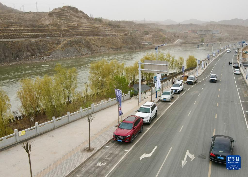 這是4月10日在蘭州市皋蘭縣什川古梨園拍攝的景區配套道路(無人機照片)。