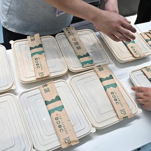 4月11日,消博會海南展臺的工作人員展示全降解產(chǎn)品。