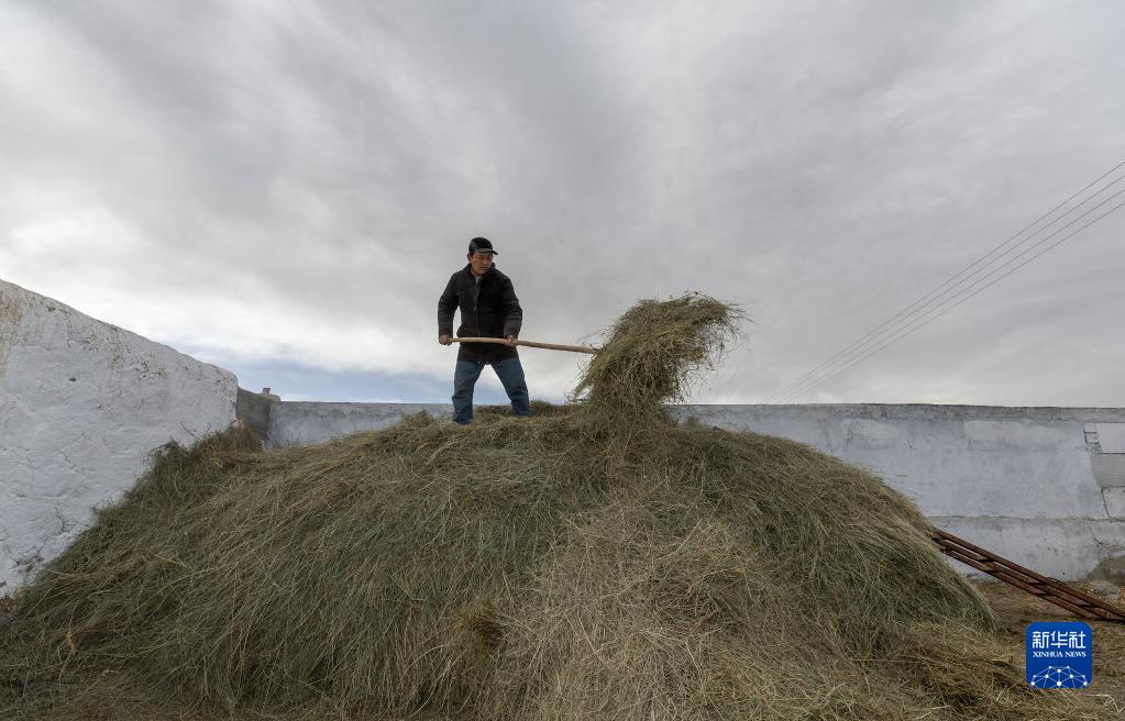4月10日清晨,在阿合奇村,阿不都別克在準(zhǔn)備草料。