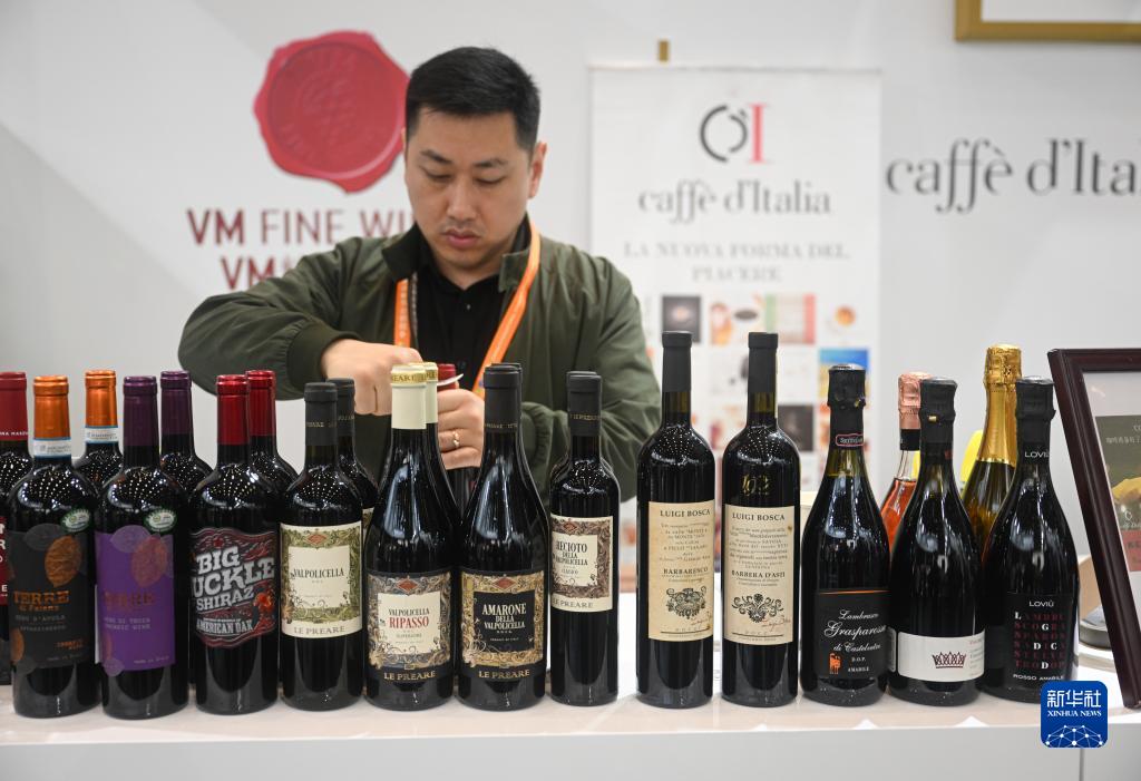 4月11日在消博會意大利企業館內拍攝的紅酒產品。