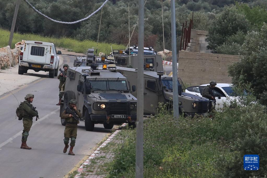 這是4月11日在納布盧斯交火現場附近拍攝的以色列士兵。