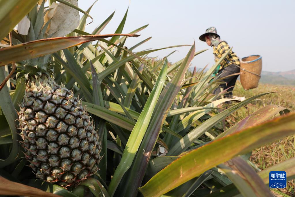 近日,云南省西雙版納傣族自治州景洪市鳳梨種植基地的鳳梨成熟,工人忙著采摘、分揀、裝箱銷往市場。近年來,景洪市因地制宜引進鳳梨種植企業,豐富熱帶水果品種,帶動當地農民增收。