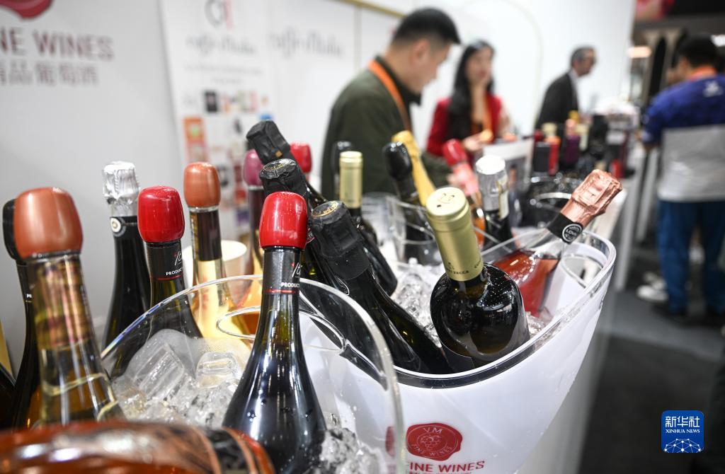 這是消博會意大利企業館內的葡萄酒(4月11日攝)。