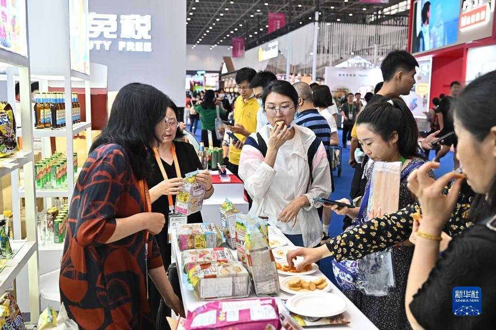在海口舉行的第三屆中國(guó)國(guó)際消費(fèi)品博覽會(huì)上,來自全球的優(yōu)質(zhì)農(nóng)產(chǎn)品和特色美食云集。觀眾在消博會(huì)上品嘗美食,享受舌尖上的盛宴。