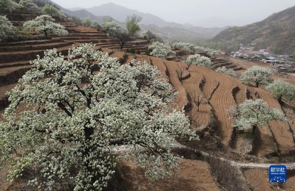 近日,地處燕山深處的河北省秦皇島市青龍滿族自治縣官場鄉旱作梯田間的安梨花相繼盛開,農民田間勞作、游客踏青賞花的身影置身于花海之中,構成了一幅美麗的鄉村田園畫卷。