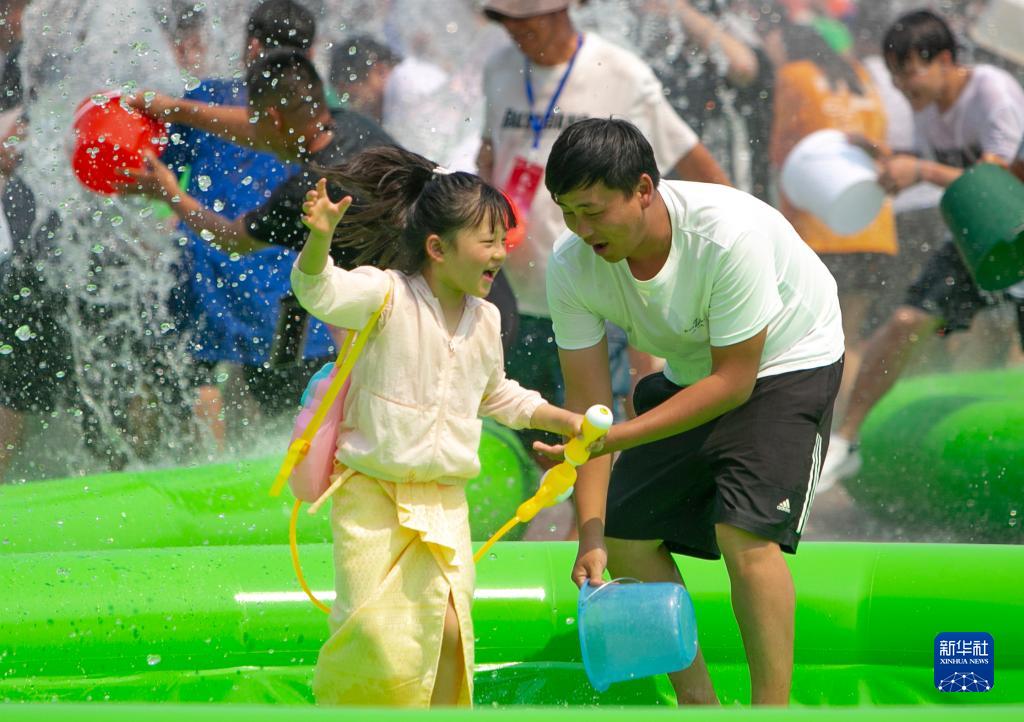 當日,云南省德宏傣族景頗族自治州芒市2023年潑水狂歡節開幕,人們相互潑灑代表幸福、吉祥的清水,表達著相互間的無限祝福。