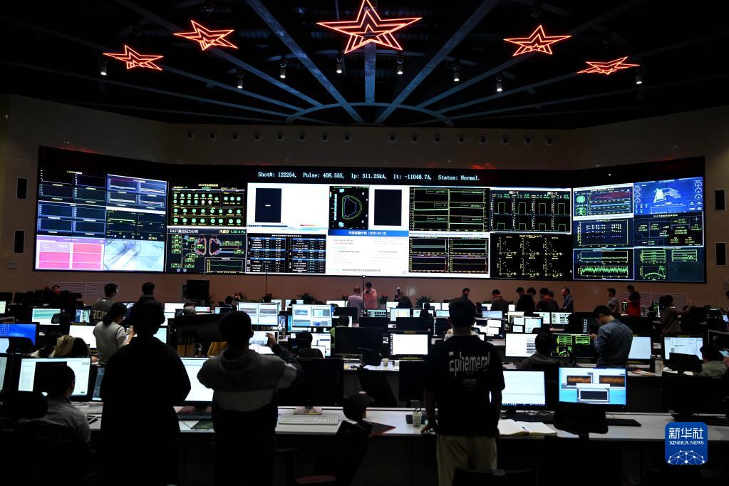 這是實驗成功后的全超導托卡馬克核聚變實驗裝置(EAST)控制大廳(4月12日攝)。