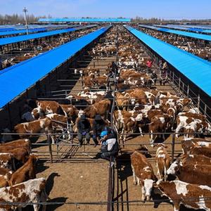 4月12日,內(nèi)蒙古通遼市科爾沁左翼中旗舍伯吐鎮(zhèn)成峰牲畜交易市場里一片繁忙景象,1000余輛貨運車整齊排列,1萬余頭黃牛正等待被交易。據(jù)介紹,這個交易市場年交易80萬頭肉牛,交易額可達(dá)80億元。今年以來,當(dāng)?shù)嘏J行星橹饾u轉(zhuǎn)好,來自遼寧、吉林、山東等地的買家再次聚集于此,帶動了養(yǎng)殖戶增收。