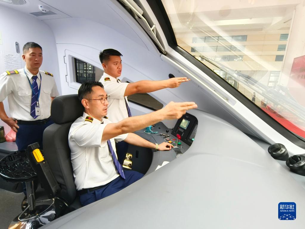 4月13日,在中老鐵路老撾萬象站,中老雙方司機在首列萬象至昆明的中老鐵路國際旅客列車上為發(fā)車做準備。