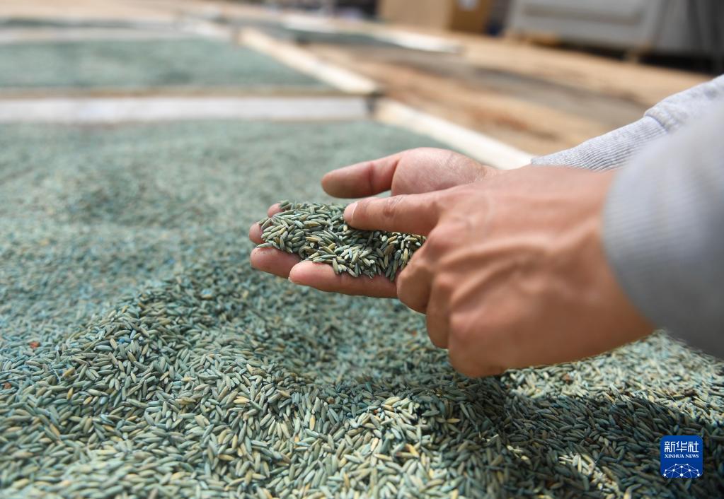 3月7日,黃從明在育秧車間內(nèi)篩選良種。