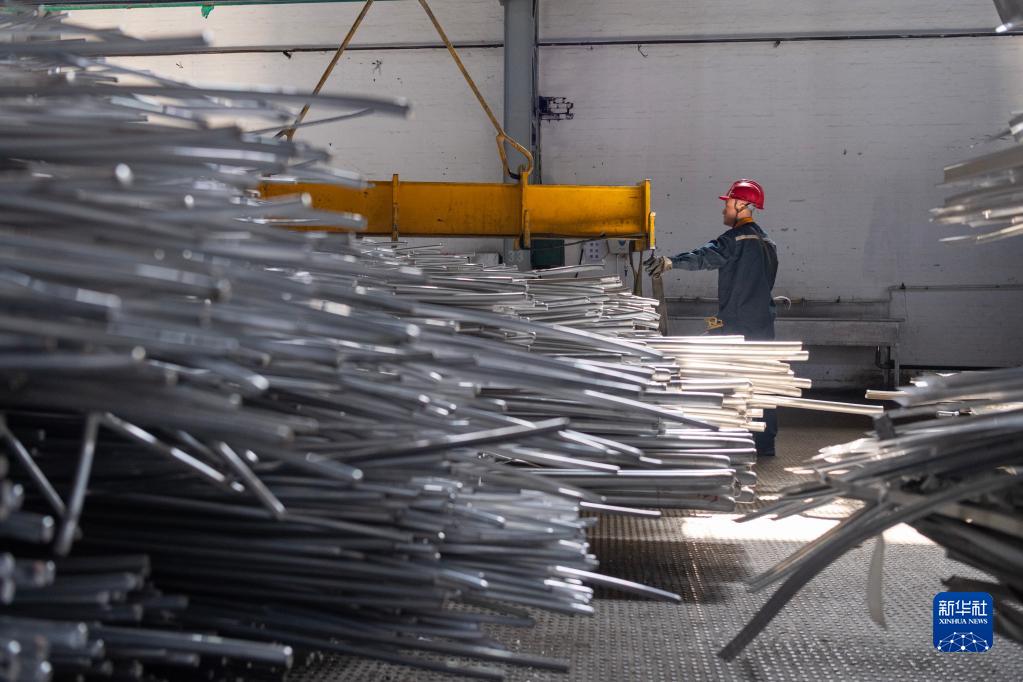 4月13日,在中鋁集團東北輕合金有限責任公司,工人在生產廠區作業。