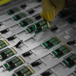 技術(shù)人員在光模塊生產(chǎn)線作業(yè)(4月11日攝)。