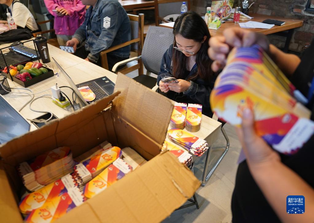 4月13日,創(chuàng)業(yè)團隊成員在辦公室清點門票。