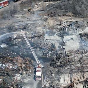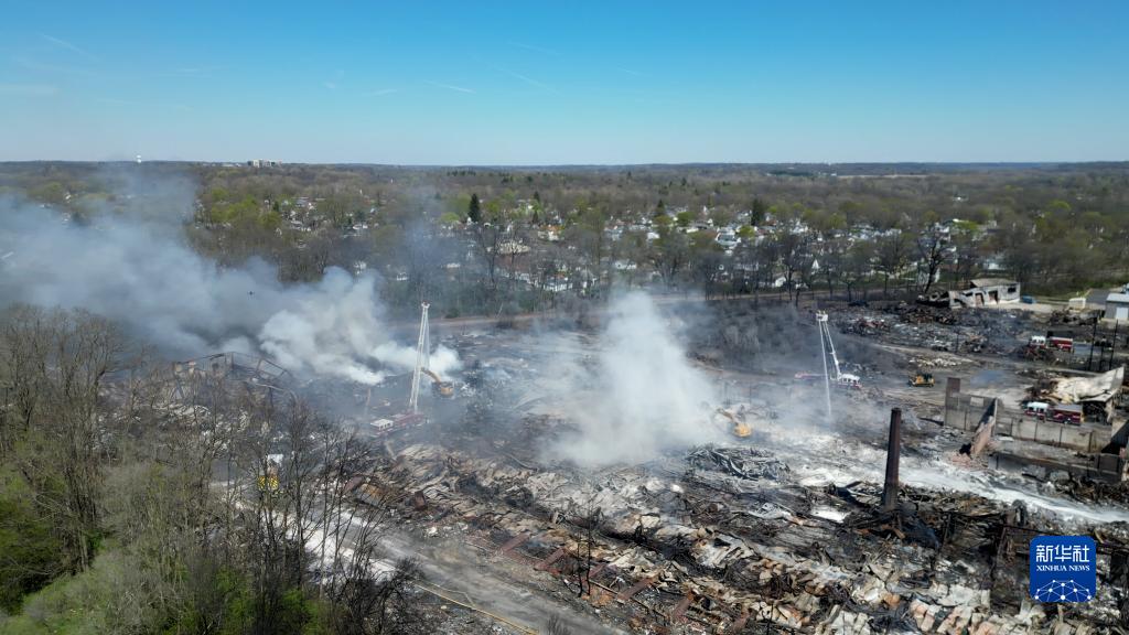 這是4月13日拍攝的美國印第安納州發(fā)生火災的回收廠(無人機拍攝)。