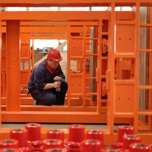 4月13日在唐山龍泉機械有限公司拍攝的全自動生產(chǎn)線。