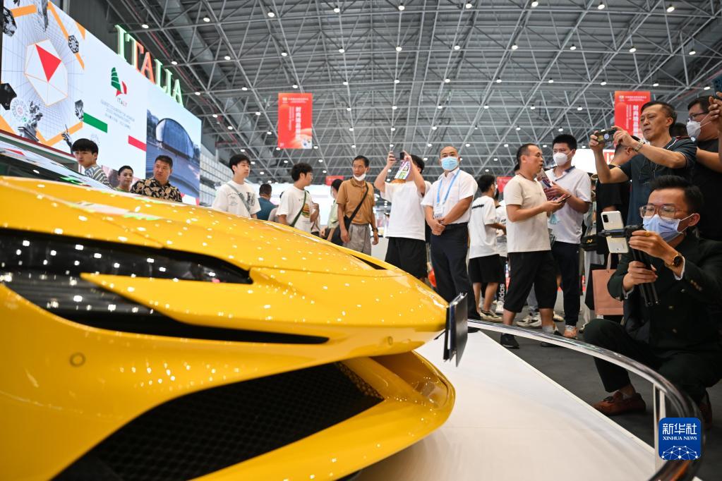 4月14日,觀眾在消博會現(xiàn)場參觀展車。