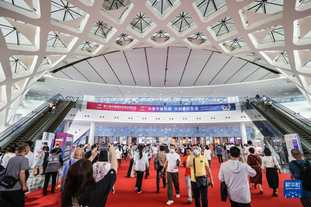 當日,第三屆中國國際消費品博覽會迎來社會公眾開放日,吸引觀眾前來觀看展覽、選購商品。