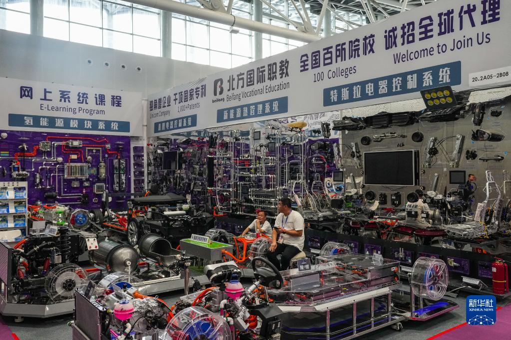 這是一家參展企業(yè)在新能源及智能網(wǎng)聯(lián)汽車出口展區(qū)設(shè)置的交易展臺(tái)(4月14日攝)。