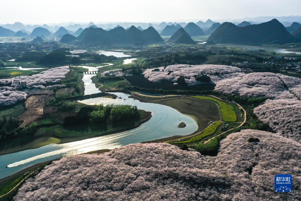 這是3月21日拍攝的貴州省貴安新區櫻花園(無人機照片)。