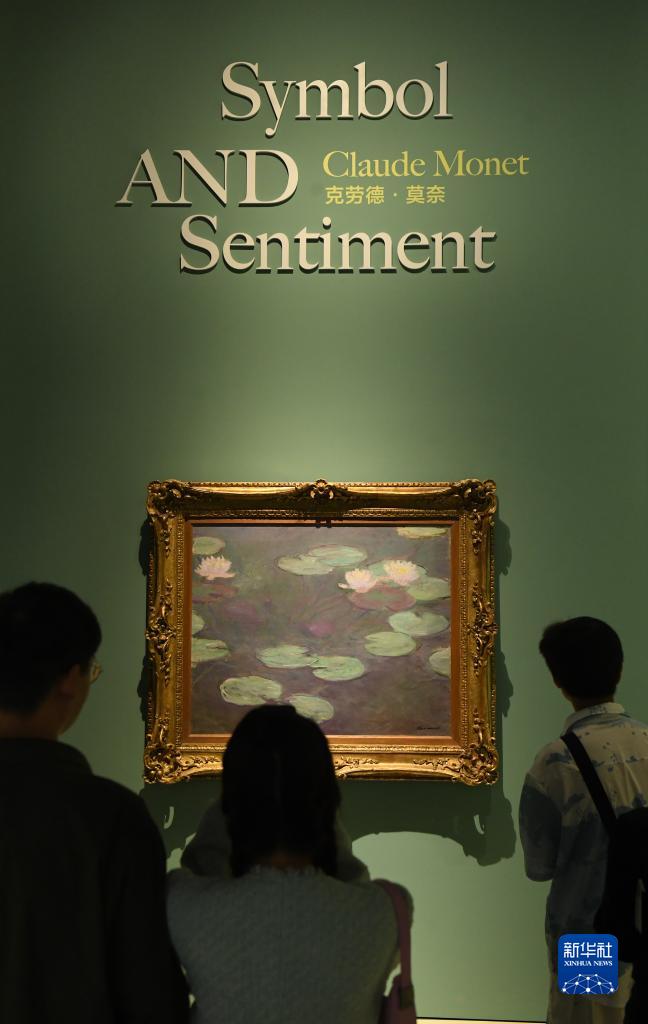 4月14日,觀眾參觀克勞德·莫奈畫作《粉色睡蓮》。