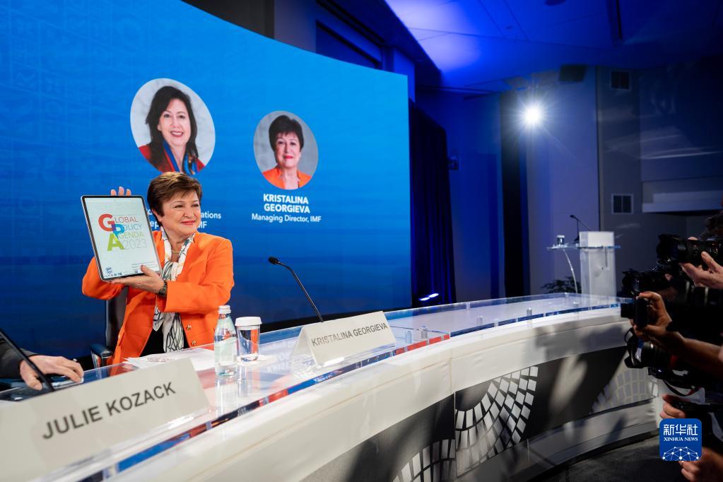 4月13日,在美國華盛頓,國際貨幣基金組織(IMF)總裁格奧爾基耶娃出席記者會。
