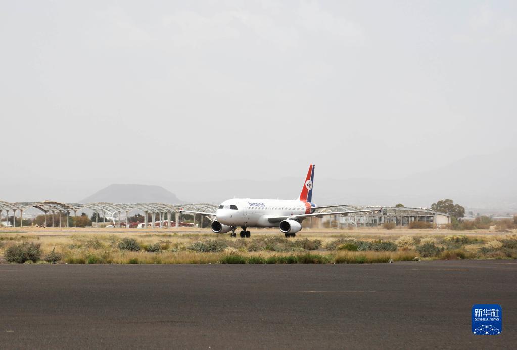 4月14日,搭載獲釋胡塞武裝成員戰(zhàn)俘的飛機抵達也門薩那機場。