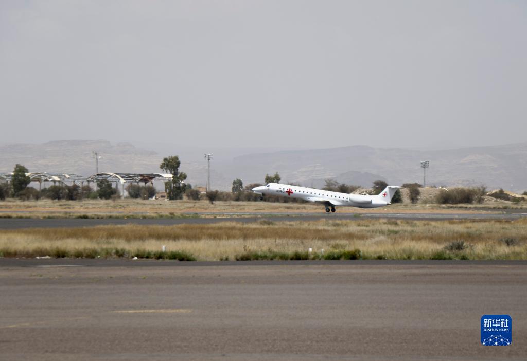 4月14日,搭載獲釋也門政府軍戰(zhàn)俘的飛機(jī)從也門薩那機(jī)場起飛,前往亞丁。